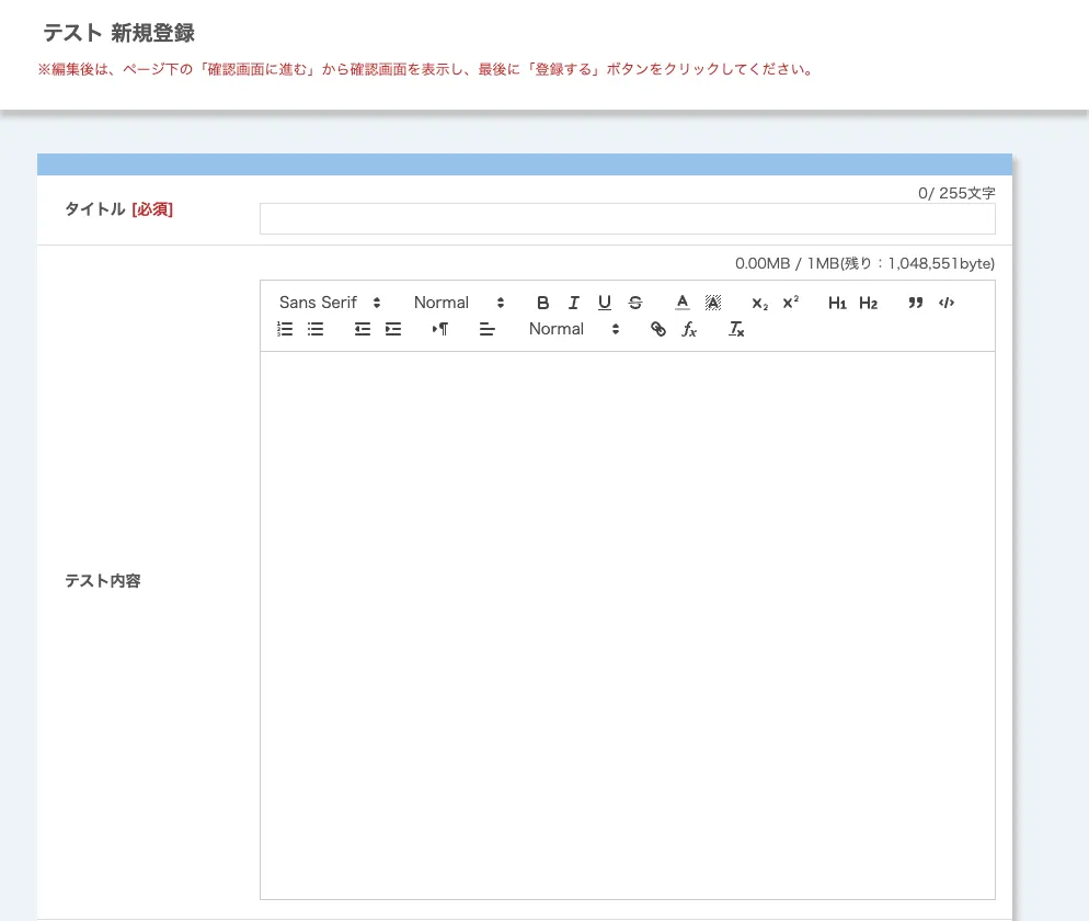 • タイトル*:テストのタイトル.
